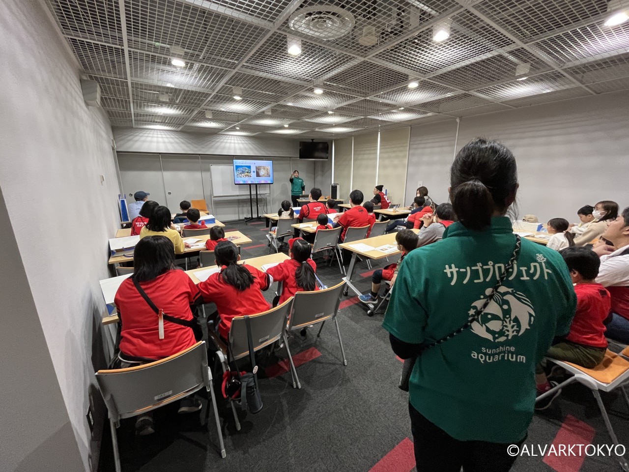 また、サンシャインシティは『ファミリー応援パートナー』として、子どもたちの思い出づくりにも貢献するようになりました。その中で、試合前の練習を誰よりも近くで見学する『プラクティスキッズ』、選手と一緒に入場する『ハイファイブキッズ』は人気のコンテンツです。加えて、この日はサンゴの保全活動にも力を入れるサンシャインシティ(サンシャイン水族館)が主催するサンゴについて学ぶ『サンゴ教室』も開催されました。